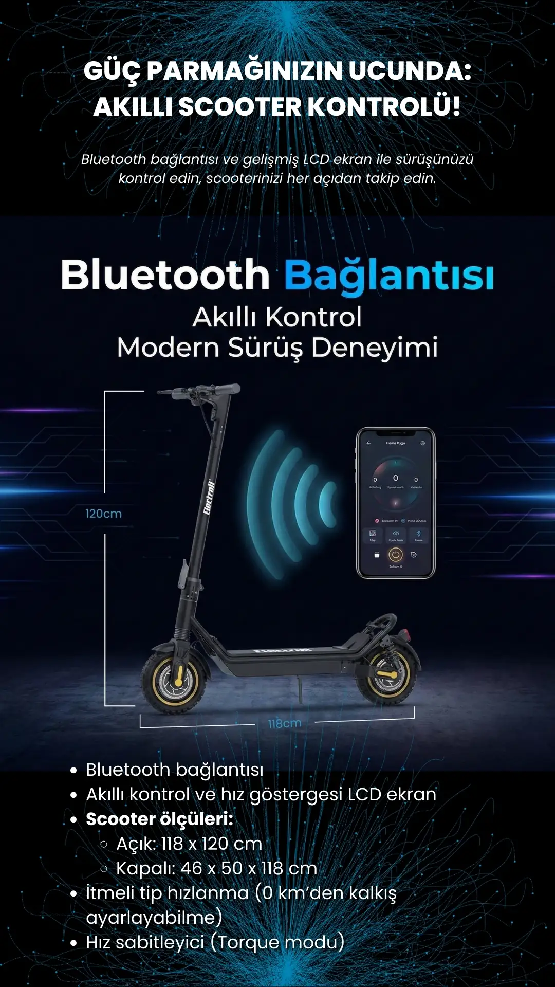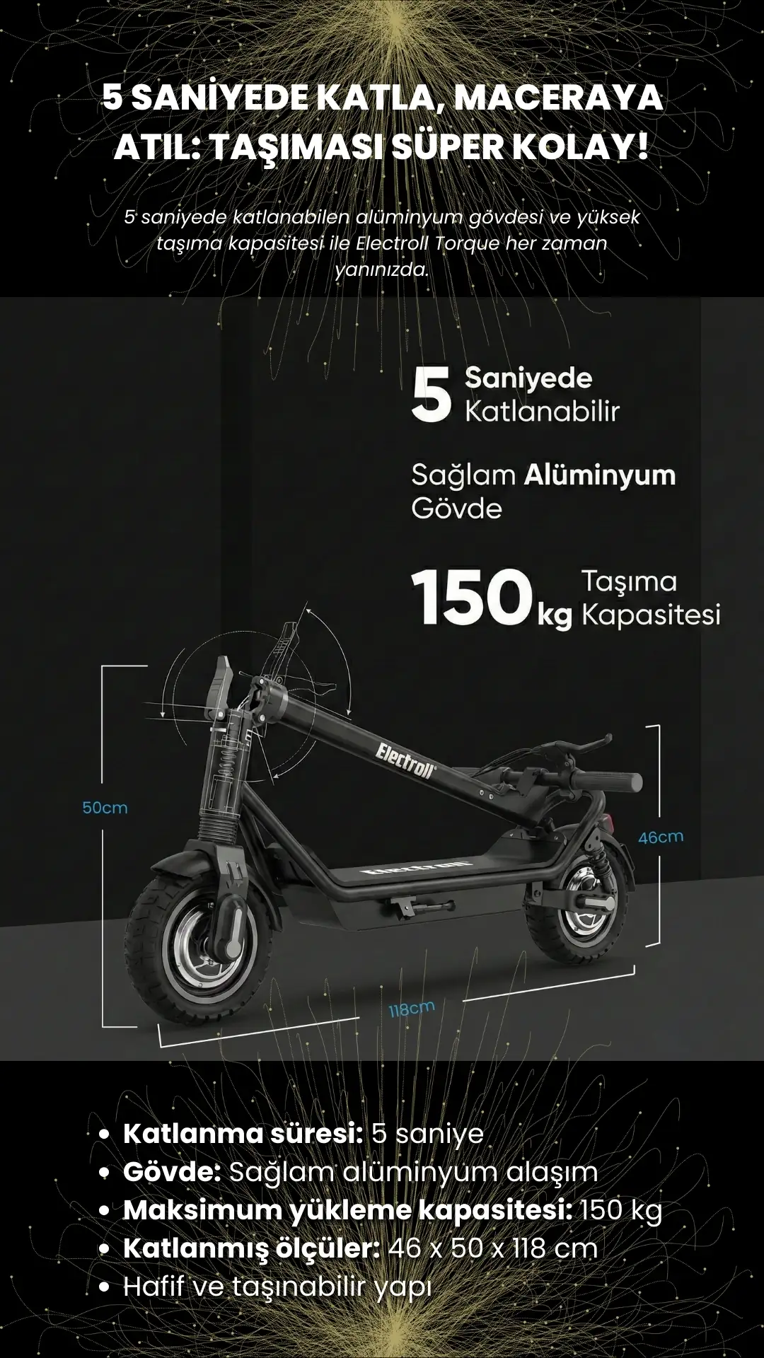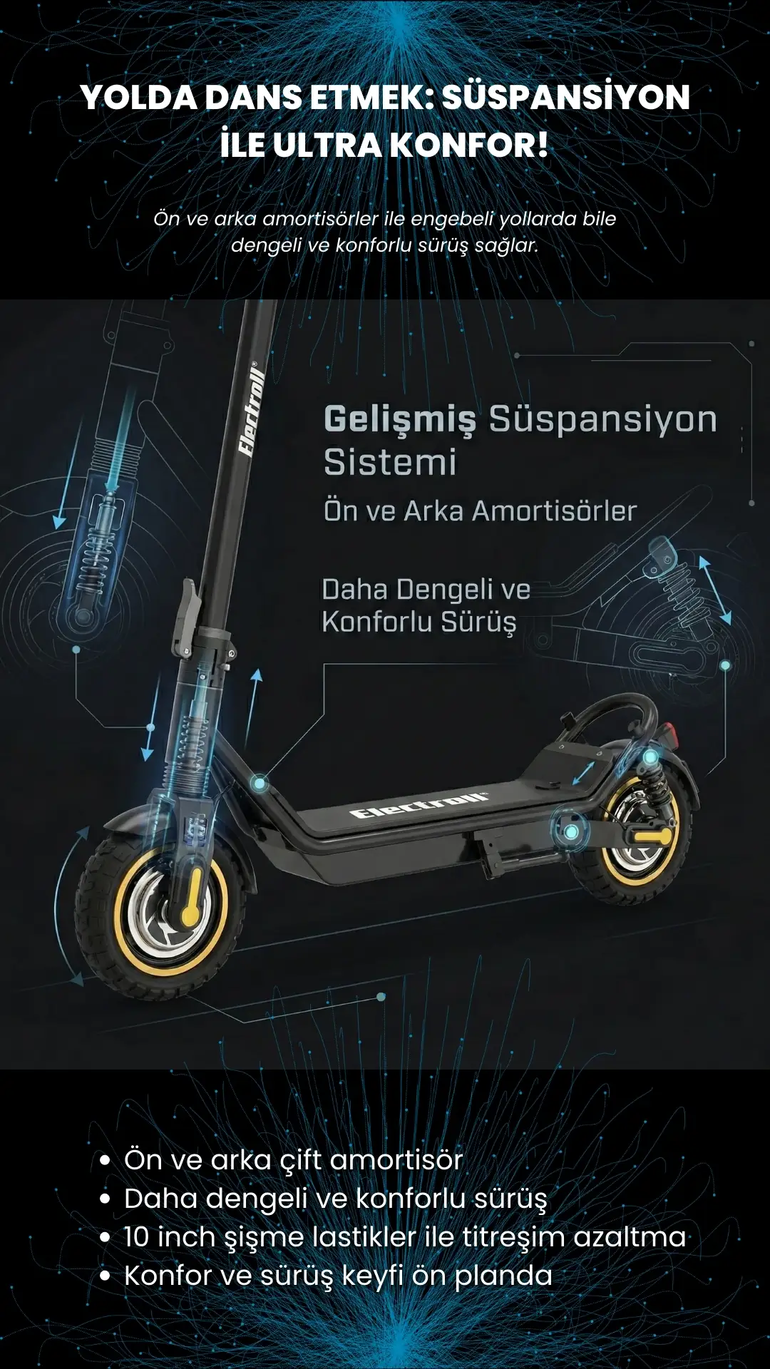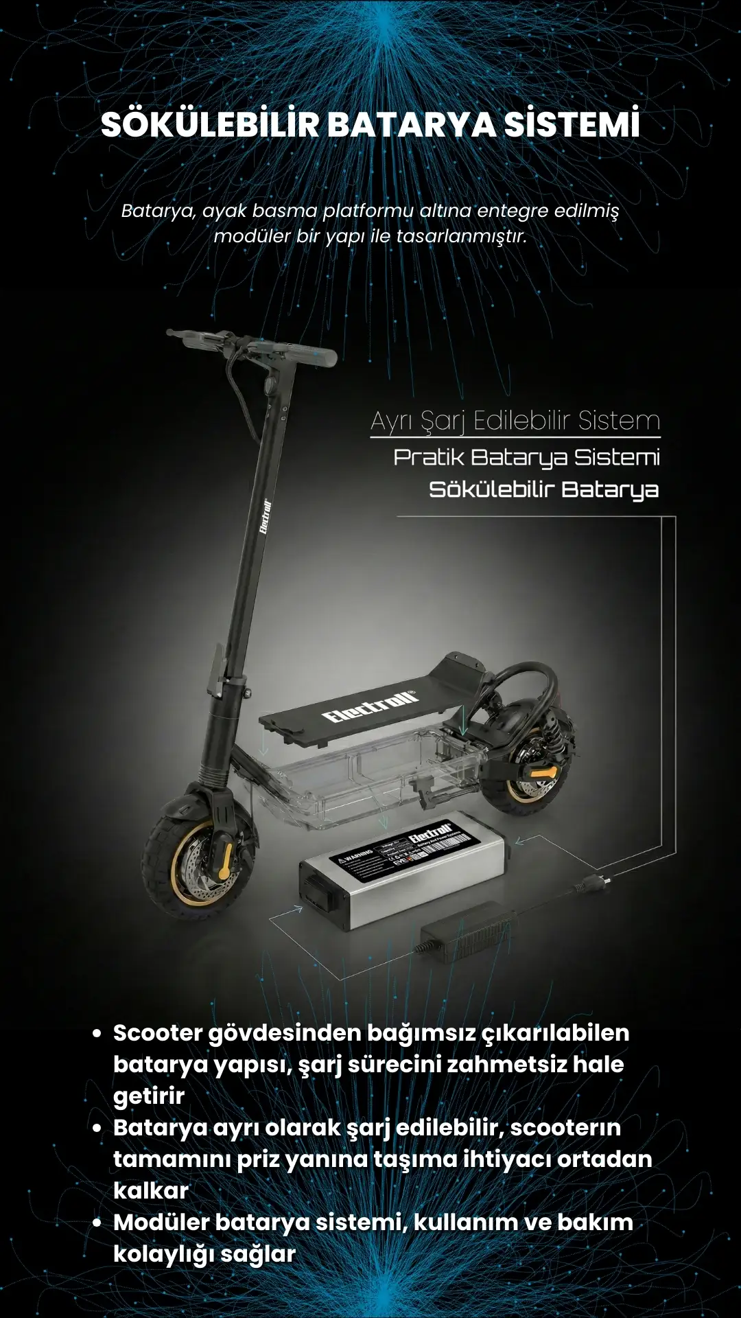 Electroll Torque 2400W Tork Gücü Çift Motor Elektrikli Scooter | 17.5Ah Sökülebilir Batarya | Süspansiyonlu