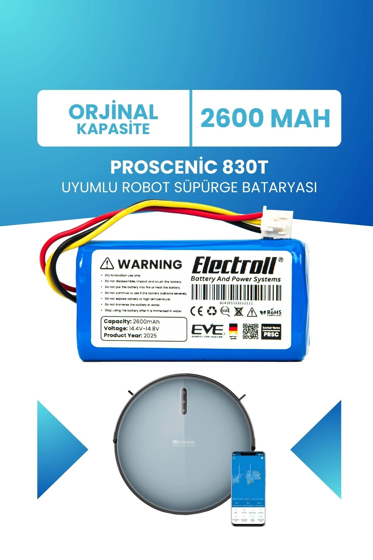 Proscenic 830t Uyumlu Batarya (ORJİNAL KAPASİTE) 2600mah Pil Robot Süpürge Bataryası Değişimi